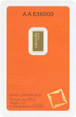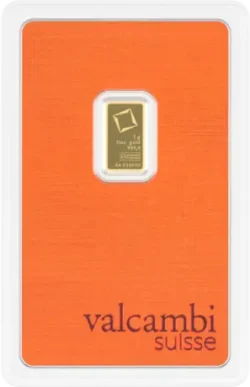 Lingot d’or 1g Valcambi en or fin 999,9‰ (24 carats), livré sous blister certifié. Raffinerie suisse reconnue, format accessible et forte liquidité pour investir en or physique en toute sécurité.